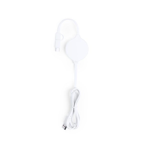 Chargeur sans fil ultra compact en monocolore blanche. Double connexion micro USB et Lightning, avec adaptateur Type-C et voyant indicateur de charge. Compatible avec les appareils équipés d une technologie de recharge sans fil.