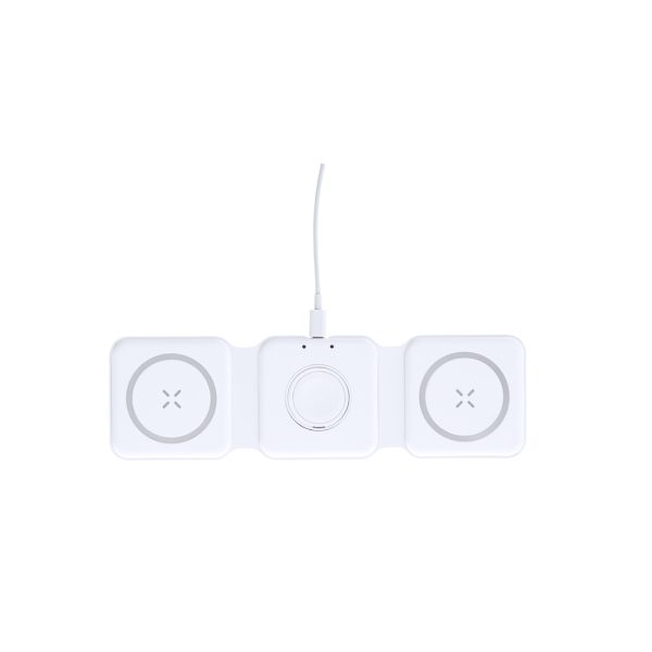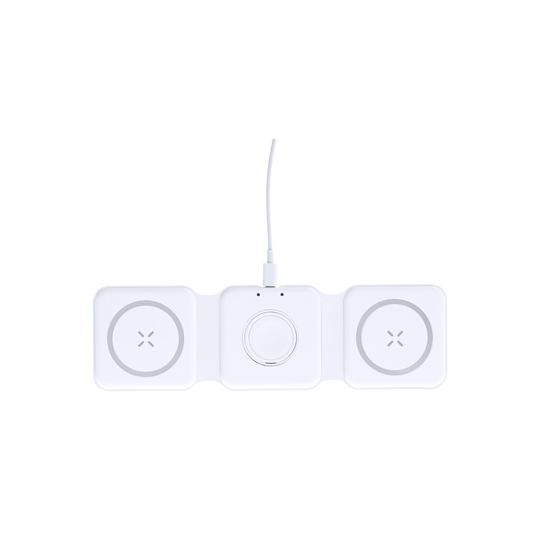 Chargeur sans fil magnétique complet 15W, conçu pour la charge simultanée de smartphone, écouteurs et smartwatch. Un gadget tout-en-un: pliable, portable, compact, très polyvalent et fonctionnel dans son design. Connexion via USB Type C -câble inclus- et fabriqué en ABS résistant de couleur blanche.Fabriqué selon les normes RoHS et en conformité avec les exigences de sécurité suivantes :Système de protection contre la surchauffe.Système de protection contre la surcharge.Système de blocage pour éviter les courts-circuits.