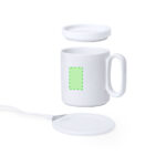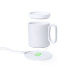 Chauffe-tasse avec chargeur sans fil à charge rapide intégré -10W-. Avec une tasse en céramique de 350 ml, spécialement conçue pour chauffer et maintenir la température de la boisson, avec un couvercle assorti. Comprend un chargeur mural et un câble de charge de type C. Présenté sous boite cadeau individuel.