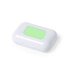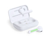 Écouteurs antibactériens avec connexion Bluetooth® 5.0. Couleur blanche au finition brillante. Conception ergonomique, comprenant un bouton de commande tactile intégré dans l’écouteur, avec une base de chargement de couleur assortie. Fonction mains libres et câble micro USB rechargeable inclus. Présenté dans un étui individuel de luxe avec couvercle à charnière et dans une boîte design. Les produits avec des traitements antibactériens sont capables de réduire considérablement les niveaux bactériens présents sur les surfaces des matériaux, grâce à l’ajout d’agents microbiens statiques permanents, avec une grande efficacité pour inhiber et prévenir la contamination bactérienne. Article selon la norme ISO 22196, qui détermine l’activité antibactérienne des matières plastiques et des surfaces non poreuses.