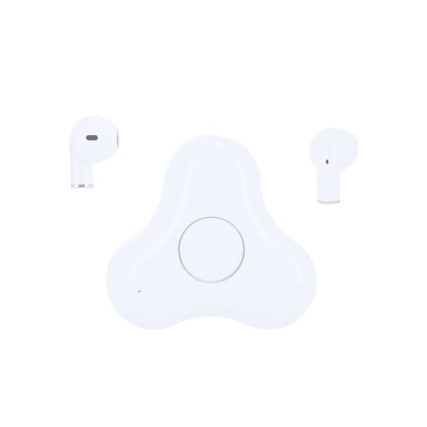 Écouteurs intra-auriculaires au design élégant blanc et connexion Bluetooth® 5.3. Étui au design original en forme de spinner, avec batterie de 200 mAh. Écouteurs à bouton de contrôle tactile intégré et fonction mains libres. Rechargeables, avec câble Type C -inclus-. Manuel d’instructions disponible en espagnol et en anglais.