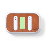 Écouteurs intra-auriculaires Bluetooth®, fabriqués en RABS et d’un blanc élégant, avec le couvercle de la base de chargement doublé de cuir recyclé.Connexion Bluetooth® 5.1, fonction mains libres et batterie de 30 mAh. Conception ergonomique, avec bouton de commande tactile intégré sur chaque écouteur et voyant d’état de charge à DEL. Base de chargement assortie avec une batterie de 300mAh. Comprend un câble de chargement Type C et un manuel d’instructions en espagnol et en anglais. Présenté dans une boîte individuelle au design kraft.Le matériau RABS ou ABS recyclé et le cuir recyclé sont issus du recyclage d’articles en fin de vie. Les matériaux recyclés utilisés intègrent la certification RCS, qui garantit leur origine recyclée.