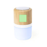 Haut-parleur avec la technologie LED intelligente et la connectivité Bluetooth® 5.0. Fabriqué en bambou, à partir de morceaux de bambou naturel. Puissance de 3W, lumière multicolore à 2 positions et rechargeable via le câble USB -inclus-. Présenté dans une boîte individuelle et éco-conçue.
