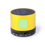 Enceinte compacte avec connexion Bluetooth® 5.0 et puissance de 3 W. Fonction mains libres, fente pour cartes mini SD jusqu’à 64 Go de capacité, fonction radio FM et entrée de ligne auxiliaire via une connexion jack 3,5 mm. Avec des supports en caoutchouc antidérapants sur la base. Compatible avec iOS et Android, comprend un câble de charge et un câble auxiliaire jack 3,5 mm. Présenté dans une jolie boîte design, avec un manuel d’instructions en espagnol et en anglais. Disponible dans une large gamme de couleurs métalliques. »