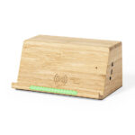 Haut-parleur de chargeur à induction sans fil et charge 10W, de la ligne Nature. Avec support smartphone intégré et 2 haut-parleurs de 3W chacun. Fabriqué en bambou à partir de coupes naturelles, avec une base antidérapante. Compatible avec les appareils équipés de la technologie de charge sans fil et rechargeable via un câble USB -inclus-. Grande surface de marquage et présenté dans une boîte d’éco design attrayante.