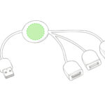 Hub USB 2.0 coloré avec accessoires de couleur assortie. Avec 3 ports USB et une zone circulaire simple pour l’impression. Présenté dans une boîte individuelle noire.