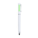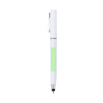 Stylo pointeur pratique à mécanisme rotatif, avec des accessoires de nettoyage logés sur le dessus de la canne. Il comprend une brosse et une pointe métallique protégées par une capuche. Avec clip métallique et encre bleue. Disponible en plusieurs couleurs et présenté individuellement dans une boîte de conception kraft.