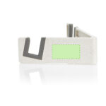 Support pour appareil mobile en ligne naturelle. Fabriqué en canne à blé/PP, afin de promouvoir l’utilisation de matières premières naturelles et de réduire les émissions polluantes.Jambes pliante avec arrêts en PVC antidérapants, spécialement conçus pour le marquage en tampographie.