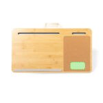 Tapis organisateur multifonctionnel de la ligne Nature. Il est fait de bambou et de liège naturel, contribuant à la durabilité de la planète. Comprend des supports pour ordinateurs portables, tablettes et autres appareils mobiles. Avec tapis de souris soft-touch intégré. De plus, il intègre un rembourrage pour les genoux, facilitant son utilisation pendant de longues périodes de manière confortable. Comprend une poignée de transport pratique.