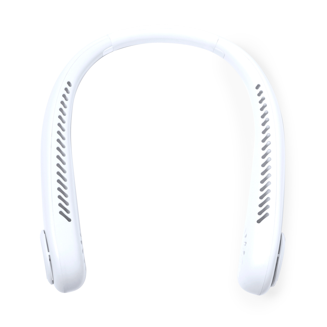 Ventilateur portable pratique en ABS robuste. Ce ventilateur élégant a un design en forme de collier pour le placer autour du cou, offrant une sensation rafraîchissante. Il offre trois positions de vitesse différentes et est rechargeable grâce à sa batterie de 800 mAh, câble micro USB inclus. Présenté dans une boîte de conception kraft.