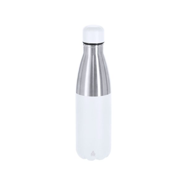 Gourde thermique de 550 ml de capacité, fabriquée en acier inoxydable recyclé à double paroi. Son design combine un corps de finition argentée avec un bouchon à vis et un fond de couleur mate assortis. Sans BPA. Inclut le logo d’acier inoxydable recyclé.L’acier est l’un des matériaux les plus recherchés et peut être trouvé presque partout, des produits de consommation quotidienne aux grandes constructions. Grâce à ses nombreuses propriétés, notamment sa durabilité et son haut degré de réutilisation, il représente une alternative hautement valorisée pour des solutions durables. correctement traité, il permet d’obtenir de nouvelles ressources d’une utilisation infinie.