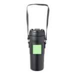Élégant bidon thermique de 700 ml de capacité, fabriqué en acier inox à double paroi. Bouchon à vis original avec doseur sur le capuchon et embout pour paille, inclus. Avec poignée de transport et pince assortie en éco-cuir. Présenté dans une boîte individuelle de conception kraft.