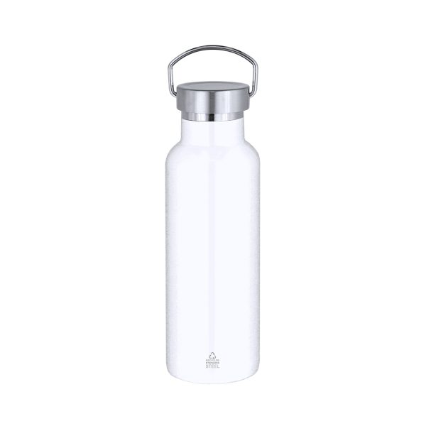 Bouteille isotherme fabriquée en acier inoxydable recyclé à double paroi, dune capacité de 500 ml. Finition en couleurs vives avec effet métallisé. Bouchon à vis avec anse de transport. Avec emblème en acier inoxydable recyclé. Lacier est lun des matériaux les plus demandés et se retrouve presque partout, des produits du quotidien aux grandes constructions. Avec dinnombrables propriétés, parmi lesquelles se distinguent la durabilité et son haut degré de réutilisation, il constitue une alternative très appréciée dans les solutions de durabilité. Correctement traité, il permet dobtenir de nouvelles ressources dutilisation infinie.