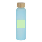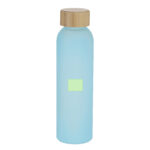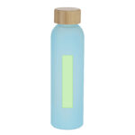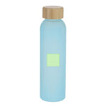 Gourde en verre recyclé, finition givrée, de 500 ml de capacité et bouchon en bambou. Inclut le logo de Verre Recyclé.