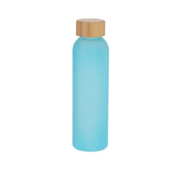 Gourde en verre recyclé, finition givrée, de 500 ml de capacité et bouchon en bambou. Inclut le logo de Verre Recyclé.