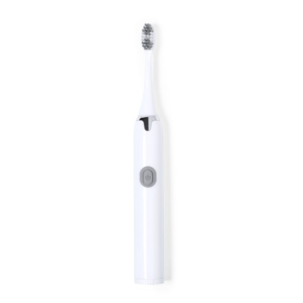 Brosse à dents électrique pratique. Nettoyage efficace grâce à sa fonction de vibration et à ses cochettes agréables. Fonctionne avec 1 piles AA (non incluses) introduites par la base. En couleur blanche et argenté, présenté dans une boîte design kraft.