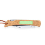 Couteau de poche de la ligne Nature avec lame en acier inoxydable et manche en liège naturel. Avec serrure et encoche sur la lame pour une ouverture facile. Cordon en similicuir assorti et présenté dans une boîte design kraft individuelle.