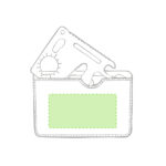 Multi outils avec corps résistant en acier inoxydable et 11 fonctions. Ouvre-boite, couteau, tournevis, règle, ouvre-bouteille, clés anglaises, clés papillon, scie et indicateur d´orientation. Présenté dans un étui robuste en simili cuir.