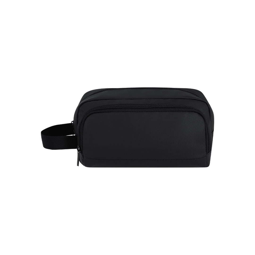 Nécessaire multi-usages en doux PU. Poche principale et poche frontale, avec fermetures éclair et tirettes métalliques. Et pratique anse de main pour un transport confortable.