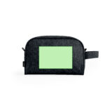 Trousse de toilette polyvalente en RPET 600D. Avec fermeture zippée et poignée métallique. Disponible dans une gamme variée de couleurs élégantes, avec Logo RPET sur l’étiquette extérieure.Le matériau RPET est fabriqué à partir de plastique recyclé, ce qui encourage la réutilisation des déchets plastiques et contribue à la durabilité de la planète.
