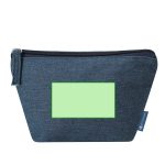 Trousse fabriquée principalement en tissu denim recyclé. Compartiment principal avec fermeture éclair. Comprend une étiquette extérieure avec le logo du denim recyclé.