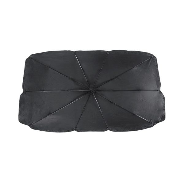 Parasol pliant pour voiture. Mesure de 140x78cm. Avec mécanisme d’ouverture manuelle et couvercle en polysette inclus
