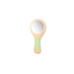 Ensemble miroir et brosse en bois naturel. Présenté dans une housse coton, avec fermeture à cordon