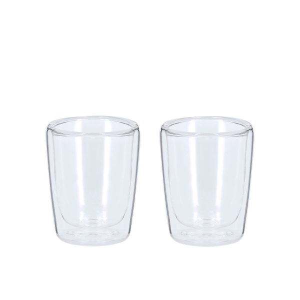 Élégant set de verres en verre borosilicaté à double paroi. Inclut deux verres, chacun avec une capacité de 65 ml. Présenté dans une boîte découpée.