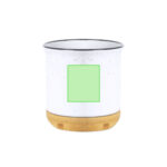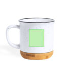 Tasse en céramique de 330ml de capacité avec design vintage et base en bambou. Extérieur en blanc tacheté et intérieur assorti, avec bordure noire. Présenté dans une boîte individuelle de finition kraft.