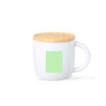 Tasse en céramique de 350 ml. Design distingué qui combine la céramique avec un couvercle en bambou double fonction, servant à la fois de couvercle et de sous-verres. Disponible en couleurs noir et blanc élégantes. Présentée en boîte individuelle finition kraft.Des matériaux comme le bambou favorisent l’utilisation de matières premières naturelles et réduisent les émissions polluantes. Il est issu d’une plante très résistante et polyvalente, avec une croissance et une régénération rapides, ce qui est une excellente alternative à l’utilisation du bois traditionnel.