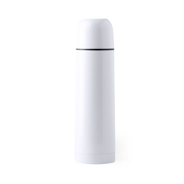 Bouteille thrernale d’une capacité de 500 ml avec corps en acier inoxydable résistant. Extérieur avec revêtement spécial, spécialement conçu pour l’impression par sublimation. Couvercle de sécurité à visser et présenté dans une jolie boîte individuelle.