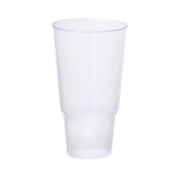 Verre de 1,2L de capacité en matériau PP résistant et flexible. Réutilisable et en finition translucide, avec une forme spéciale sur le fond pour s’adapter aux sous-verres.