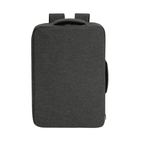 Sac à documents fabriqué en RPET 300D résistant. Présente un design urbain qui incorpore un compartiment principal avec fermeture éclair cachée pour plus de protection, à double tirette. Avec intérieur rembourré pour un ordinateur portable jusqu’à 15 pouces, poches supplémentaires à l’intérieur pour petits objets. Ses bretelles et son dos sont rembourrés et ajustables pour un plus grand confort. Offre trois modes de transport : comme un sac à dos, grâce aux bretelles rembourrées ; comme un porte-documents, grâce à sa poignée de transport ; et sangle pour trolley. Le matériau RPET est élaboré à partir de plastique recyclé, afin de favoriser la réutilisation des déchets plastiques et d’aider à la durabilité de la planète.
