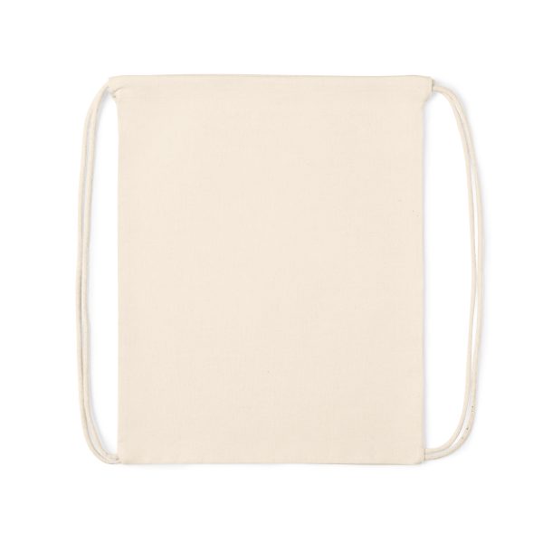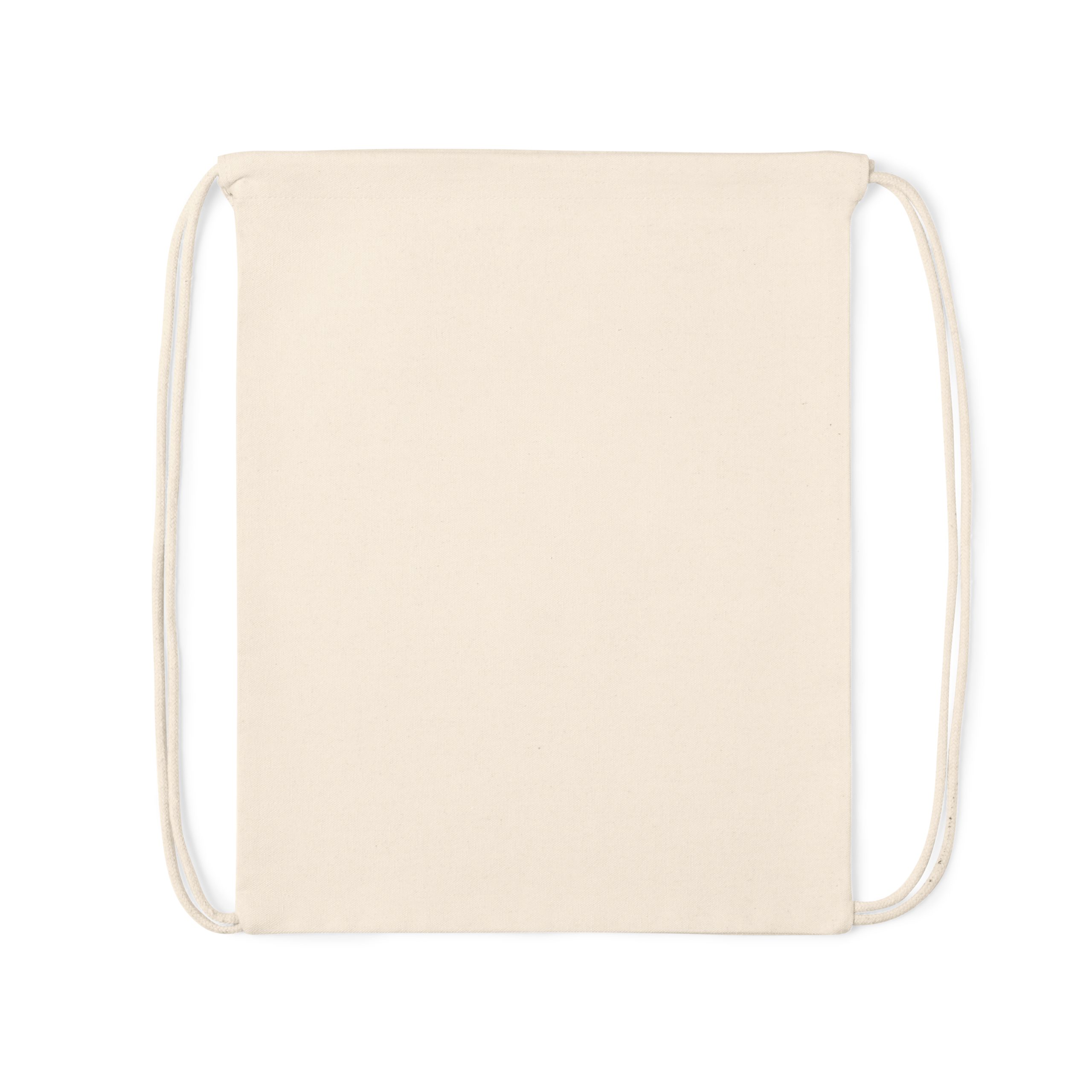 Sac à dos à cordes de la ligne Nature en coton 180g/m2 en finition naturelle. Compartiment principal avec cordons en coton.