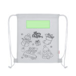 Sac à dos de Noël pour enfants en RPET non tissé, spécialement conçu pour colorier avec des crayons. Avec des dessins de Noël amusants, comprenant 4 crayons de couleurs différentes. Il a des cordons auto-fermants et des attaches en tissu, ainsi qu’une étiquette RPET à l’extérieur.Le matériau RPET est fabriqué à partir de plastique recyclé, ce qui favorise la réutilisation des déchets plastiques et contribue à la durabilité de la planète.