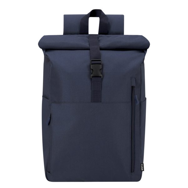 Sac à dos en RPET 300D résistant avec fermeture roulée et boucle. Dispose de deux poches frontales, dune poche arrière avec accès latéral et de deux poches latérales supplémentaires. Intérieur spacieux avec compartiment rembourré pour ordinateur portable jusquà 15 pouces. Bretelles et dos rembourrés. Avec sangle pour fixation sur trolley ou valise, idéal pour les voyages et déplacements. Le matériau RPET est fabriqué à partir de plastique recyclé, favorisant la réutilisation des déchets plastiques et contribuant à la durabilité de la planète.