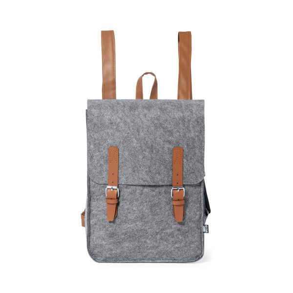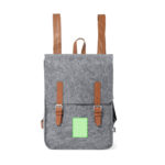 Sac à dos design en feutre RPET résistant, avec sangles de fermeture, poignée de transport et bretelles en similicuir. Grand compartiment principal, rabat avec bretelles réglables et fermeture à boucle métallique. Avec bretelles réglables et logo RPET sur l’étiquette extérieure.Le feutre RPET est le résultat de la combinaison du processus de recyclage des matières plastiques avec l’ancienne technique de fabrication du feutre, résultant en un matériau éco-tendance qui, en plus d’être d’origine recyclée, devient également recyclable.