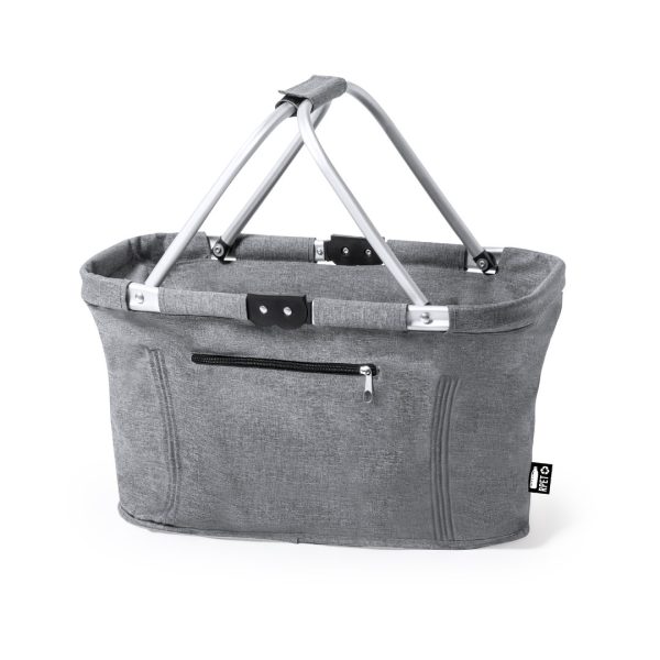Panier pliable en RPET 600D résistant. Avec structure en aluminium résistante et 2 poignées de transport pliables en aluminium, avec sangle velcro assortie. Poche extérieure avec fermeture à glissière et étiquette extérieure avec logo RPET.Le matériau RPET est fabriqué à partir de plastique recyclé, afin de favoriser la réutilisation des déchets plastiques et d’aider à la durabilité de la planète.