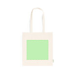 Sac en coton bio de 180g/m2 et dans un ton naturel. Finition cousue, avec poignées moyennes renforcées de 70 cm. Résistance jusqu’à 8kg, y compris étiquette avec badge en coton biologique et étiquette suspendue en carton recyclé.