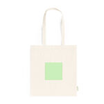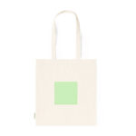 Sac en coton bio de 140g/m2 et dans un ton naturel. Finition cousue, avec poignées moyennes renforcées de 70 cm. Résistance jusqu’à 8kg, y compris étiquette avec badge en coton biologique et étiquette suspendue en carton recyclé.