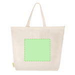 Sac en coton recyclé de 220 g/m2 de couleur naturelle. Ans longues de 60×2,5 cm avec renforcement, finition cousue et soufflet. Logo sur étiquette latérale et résistance jusqu’à 10 kg de poids.