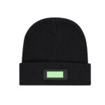 Bonnet doux et chaud pour enfants en matériau acrylique. Élastique et facile à ajuster, avec un ourlet assorti et une étiquette frontale pour le marquage.