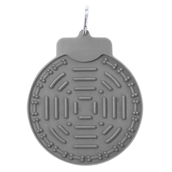 Coussin pour animaux de compagnie à lécher fabriqué en silicone douce. Avec de puissantes ventouses pour la fixer sur des surfaces plates et que les animaux de compagnie puissent lécher leur surface rugueuse. Mousqueton de transport intégré facile à accrocher. Présenté dans un sac individuel recyclé.