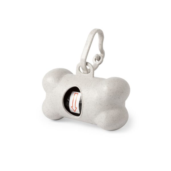 Distributeur de sacs pour animaux de compagnie en fibre de bambou. Avec un corps résistant et un design en os, un mousqueton de couleur assortie et 15 sacs biodégradables inclus.
