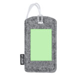 Identificateur de valise en feutre RPET. Pour attacher n’importe quelle valise grâce à son ruban flexible et indiquer des informations de base, fabriqué en feutre RPET, avec fenêtre et étiquette distinctive de RPET.Le feutre RPET est le fruit de la combinaison du processus de recyclage des matières plastiques et de la technique millénaire de fabrication du feutre, ce qui donne un matériau éco-tendance qui, en plus d’être d’origine recyclée, devient également recyclable.