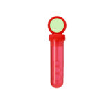 Pompero con aplicador especial que permite crear pompas en 3 tamaños. Líquido incluido (30 ml). Con tapadera de color sólido y cuerpo translúcido.