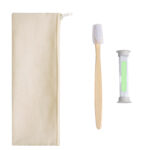 Ensemble de brosse à dents et sablier en bambou et canne à blé. Comprend brosse avec poignée ergonomique en bambou doux avec capuche de protection. Il comprend également un sablier de 2 minutes fabriqué en canne à blé. Présenté dans une pochette pratique en coton respirant. La canne à blé encourage l’utilisation de matières premières naturelles, réduisant ainsi les émissions polluantes.