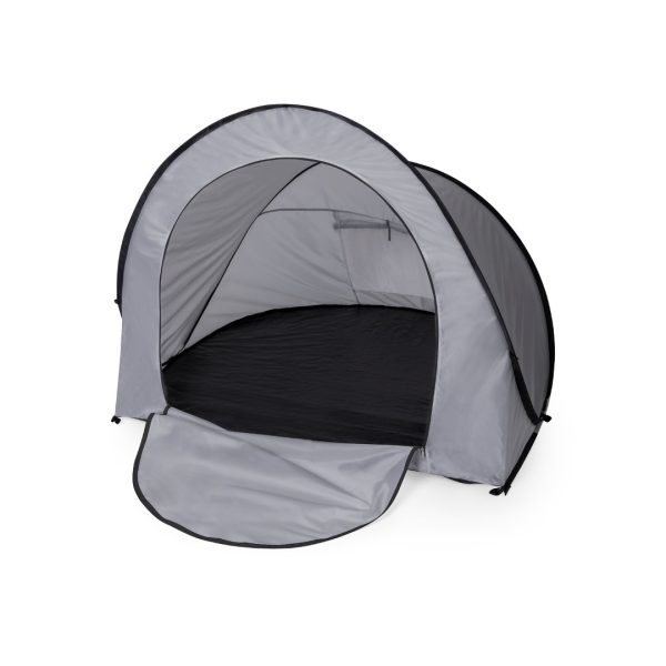 Tente à monter soi-même, il vous suffit de la retirer de la housse et elle se déplie automatiquement. Fabriqué en polyester RPET résistant, avec une structure en métal et des détails en noir. Large porte d’entrée, avec fermeture à glissière intérieure et extérieure à double poignée. Lunette arrière avec moustiquaire, fermeture velcro et store enrouleur avec cordon et ruban de fixation. Idéal pour 2 personnes et facile à plier. Présenté dans une pochette assortie, avec le logo RPET sur l’étiquette extérieure.Le matériau RPET est fabriqué à partir de plastique recyclé, afin de favoriser la réutilisation des déchets plastiques et d’aider à la durabilité de la planète.