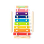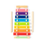 Xylophone avec socle et baguettes en bois de pin naturel. Clés métalliques multicolores et présentées dans une boîte design individuelle en kraft.