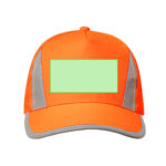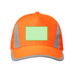 Casquette 5 panneaux en polyester souple. Fermeture velcro réfléchissante réglable à l’arrière. Couleur jaune fluor ou orange avec détails réfléchissants sur la visière, l’avant et l’arrière.